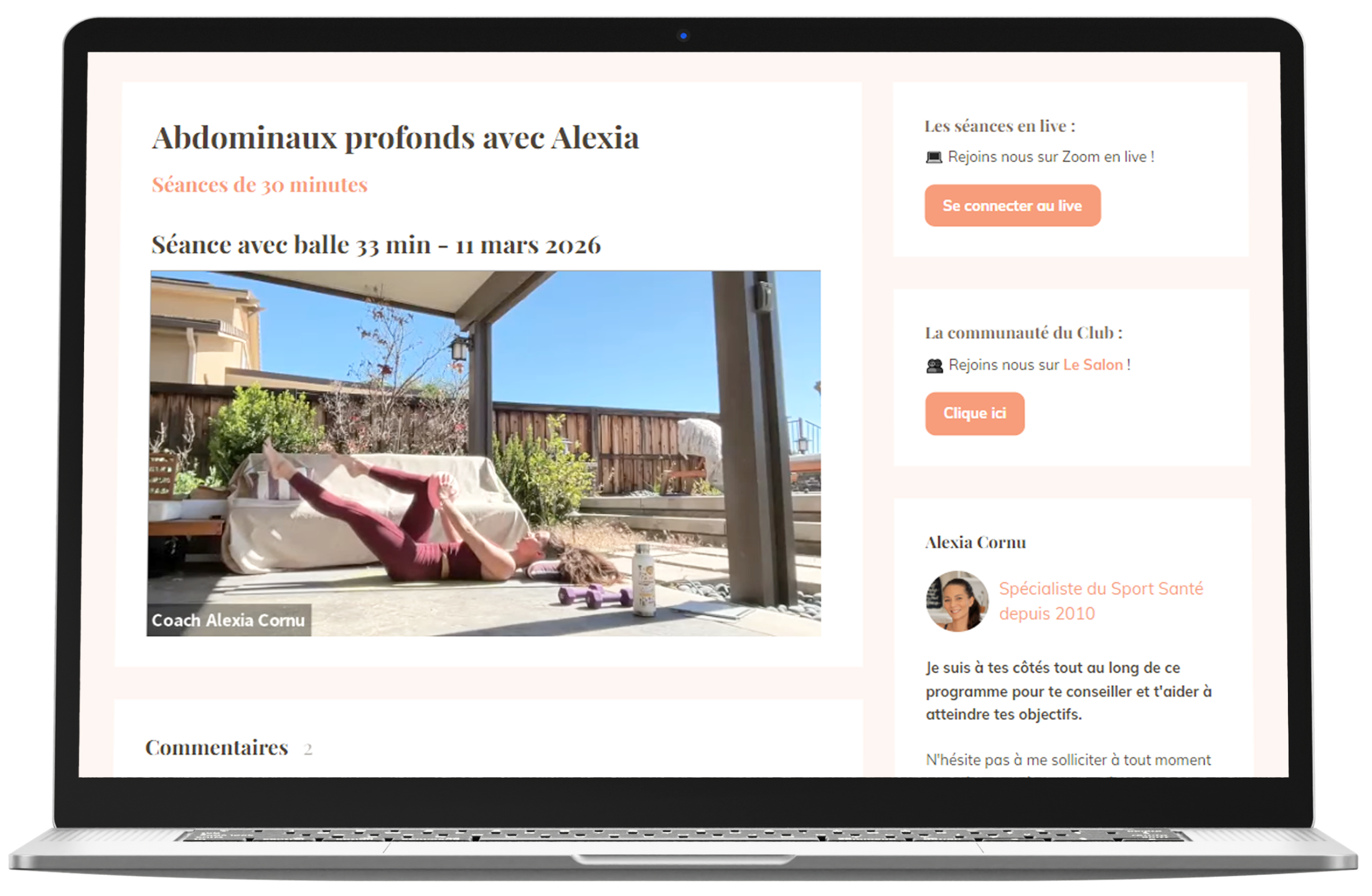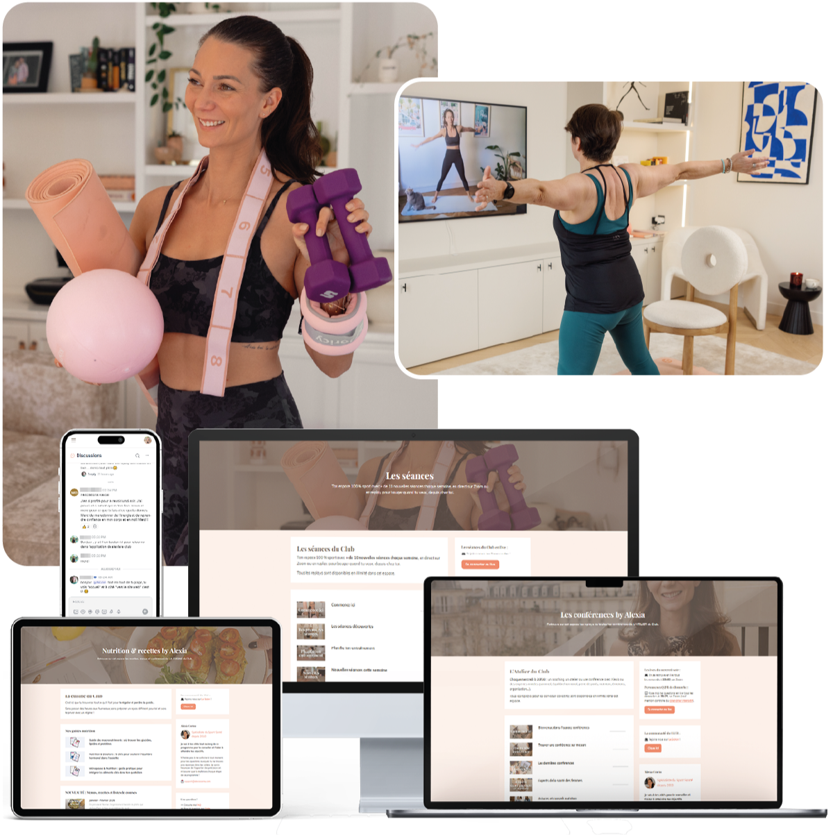 Ton espace 100 % sport avec + de 10 nouvelles séances de 15 à 60 min chaque semaine, en direct sur Zoom et/ou à la demande, pour bouger d'où tu veux, quand tu veux.
