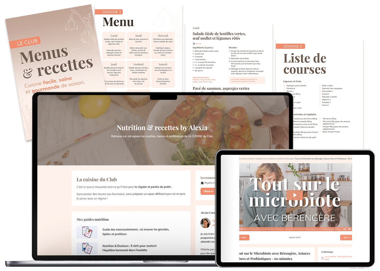 ✔ Accès à la cuisine du Club : 100+ recettes anti-inflammatoires et menus de saison clés en main