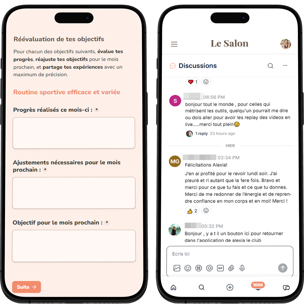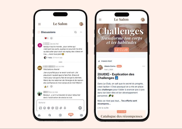 C’est l’espace communauté du Club : les membres s’y retrouvent pour relever des défis, gagner des cadeaux, échanger des recettes, se soutenir dans les protocoles, rester motivées… et célébrer tes réussites !